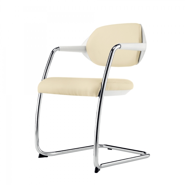 Design com base tipo “sled”, que proporciona estabilidade e leveza visual.